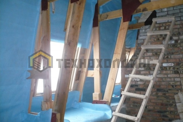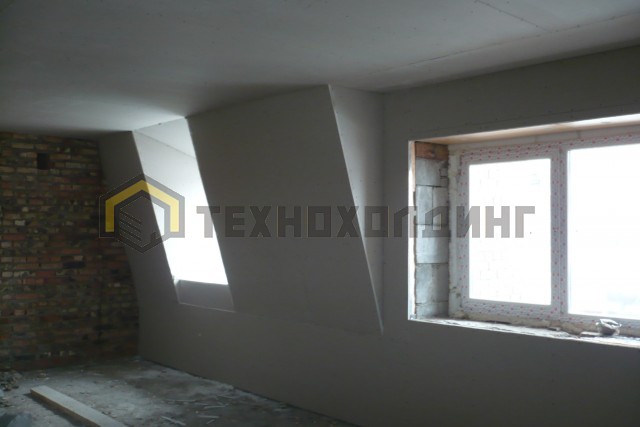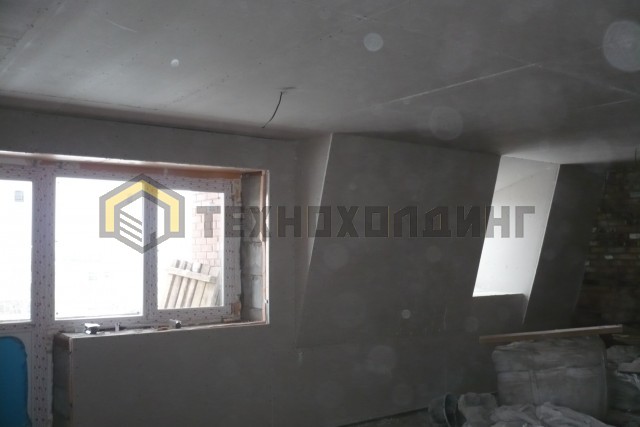 На данном объекте был выполнен полный комплекс работ начиная от проектирования мансарды и сборки ферм, заканчивая черновой отделкой