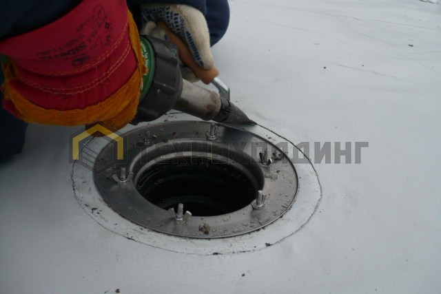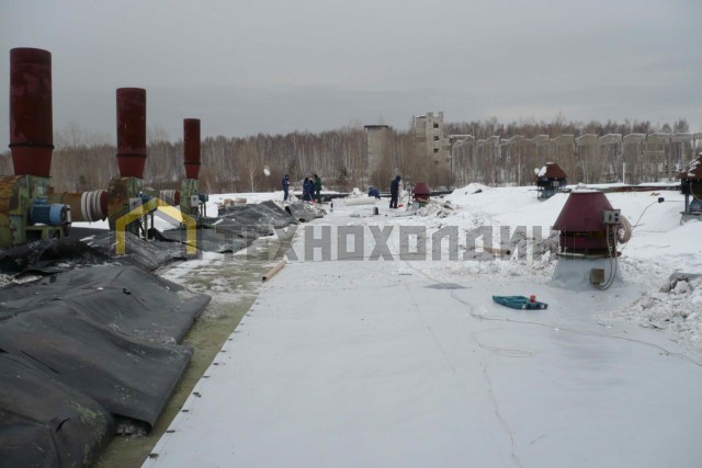 Замена существующей мембраны, на полимерную мембрану ECOPLAST с механическим и балластным способом закрепления.
