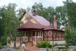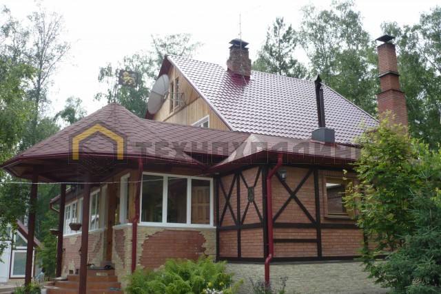 Основная кровля выполнена из металлочерепицы, а пристройка из гибкой черепицы Shinglas.