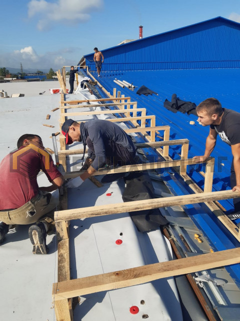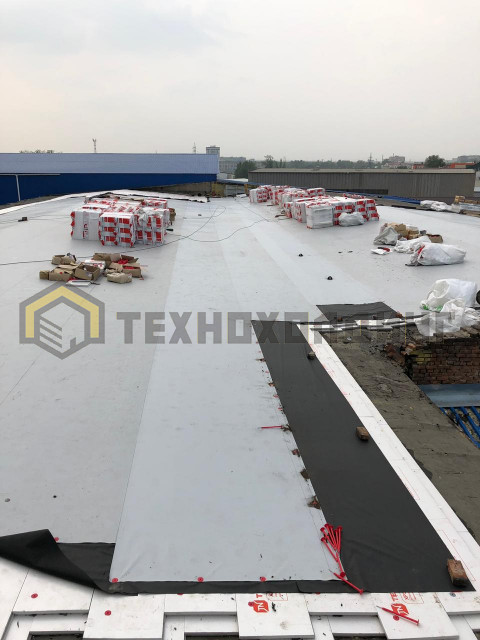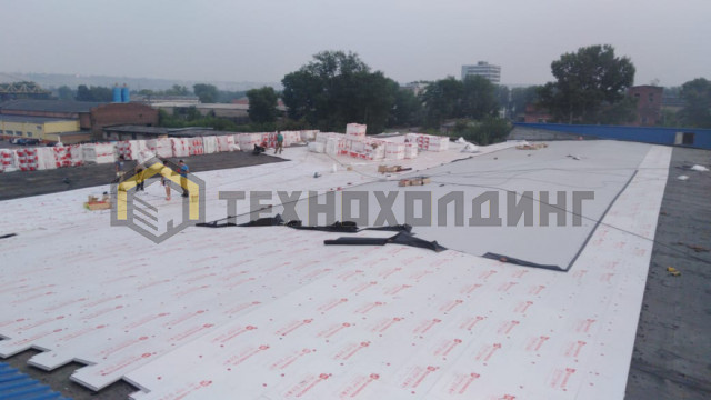 Замена фальцевой кровли на плоскую из ПВХ мембраны с дополнительным утеплением, втч монтаж внутреннего водостока