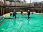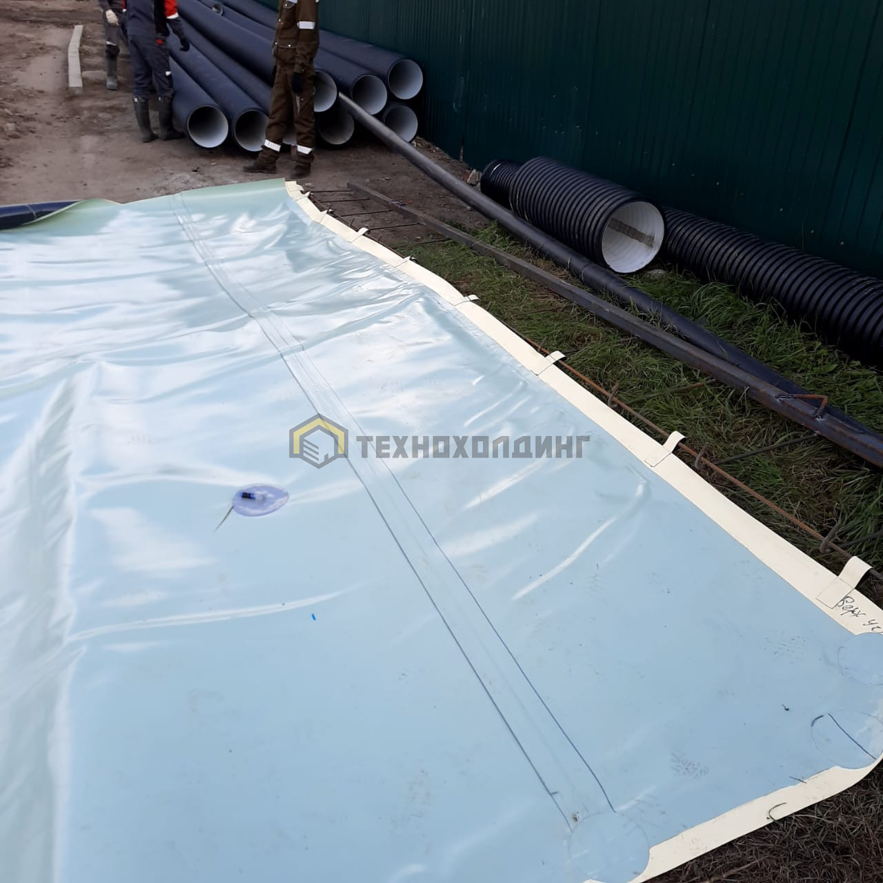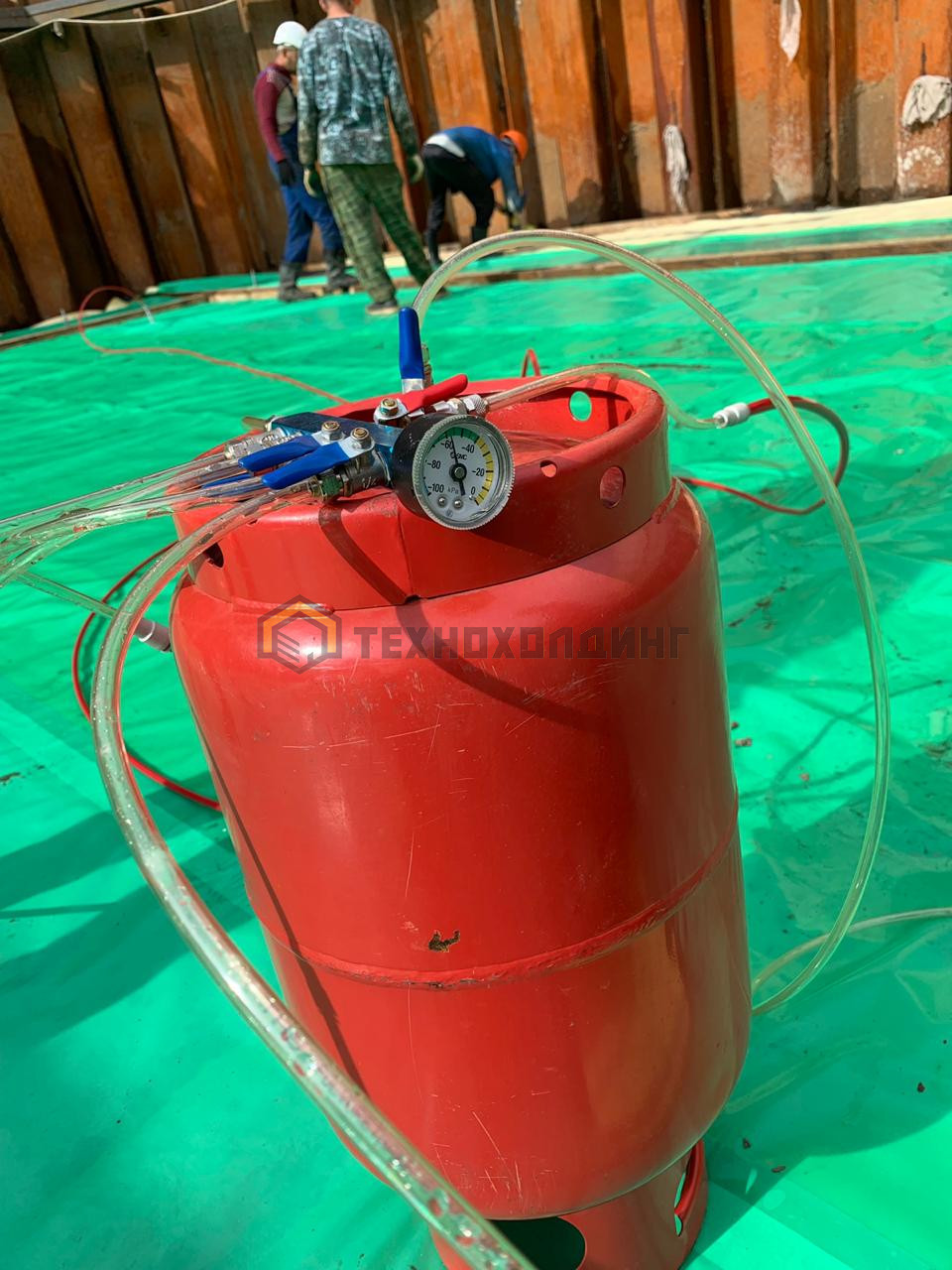 Гидроизоляционная система с вакуумным контролем качества состоит из двухслойных карт площадью до 150 м2. Каждая карта формируется путем сварки по периметру первого гидроизоляционного слоя из ПВХ мембраны LOGICBASE V-SL со вторым гидроизоляционным слоем из фактурной ПВХ мембраны LOGICBASE V-ST или прозрачной мембраны LOGICBASE V-ST-T. Система также может быть выполнена на основе ТПО мембран. Деление гидроизоляции на карты позволяет локализовать протечки в случае их возникновения и выполнить локальный ремонт с помощью полимерных ремонтных составов LOGICBASE INJECT. Этапы устройства двухслойной гидроизоляционной системы 1. Монтаж первого слоя гидроизоляции. 2. Монтаж второго слоя гидроизоляции. 3. Сварка двух гидроизоляционных слоев по периметру с формированием двухслойных карт. 4. Установка инъекционных штуцеров на верхнем гидроизоляционном слое. 5. Выкачивание воздуха из карты, проверка герметичности при помощи вакуумного теста. 6. Вывод вакуумных трубок в специальные ниши. Уникальность данной системы — возможность инструментального контроля герметичности по всей площади гидроизоляции. Наличие в системе второго гидроизоляционного слоя из мембран LOGICBASE V-ST или V-ST-T со специальной текстурированной поверхностью, а также инъекционных штуцеров и трубок позволяет ремонтировать гидроизоляцию путем инъектирования полимерных составов LOGICBASE INJECT внутрь двухслойной карты. Ремонтный состав беспрепятственно подается через инъекционные трубки в карту между двух слоев мембран, заполняет ее ограниченный объем, полимеризуется с образованием водонепроницаемого геля и, таким образом, восстанавливает герметичность гидроизоляции.