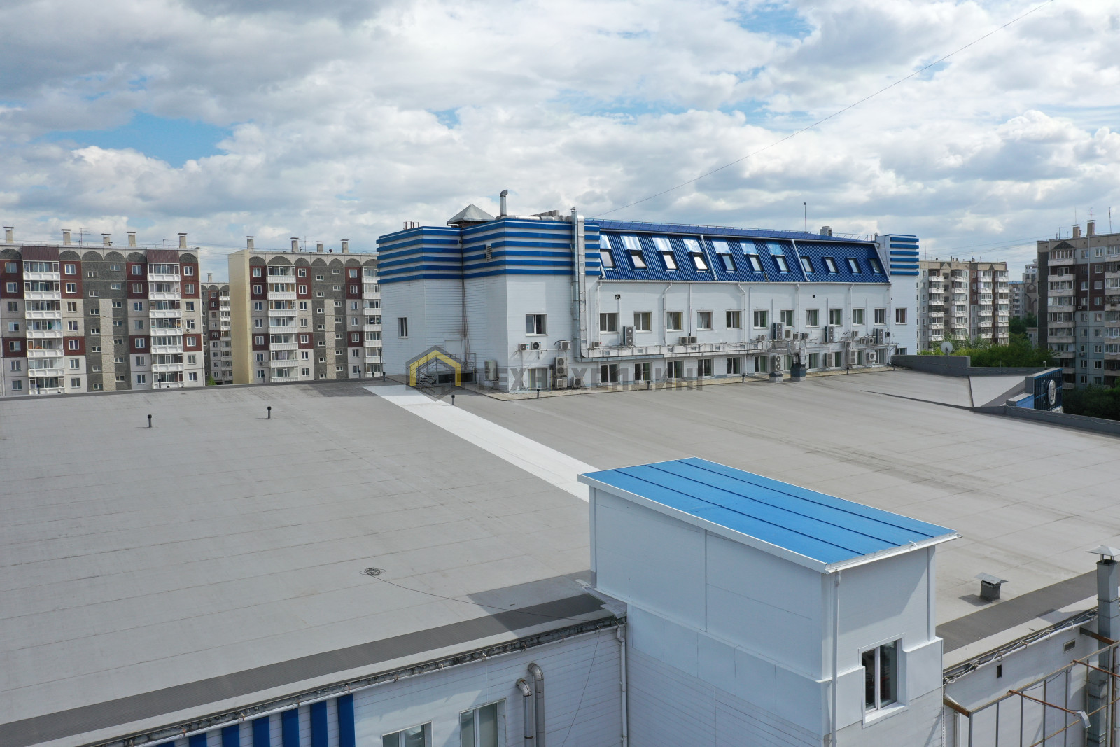 На данном объекте для приведения эвакуационных путей в соответствие с противопожарными требованиями были выполнены пути по кровле из несгораемого покрытия Logicroof NG